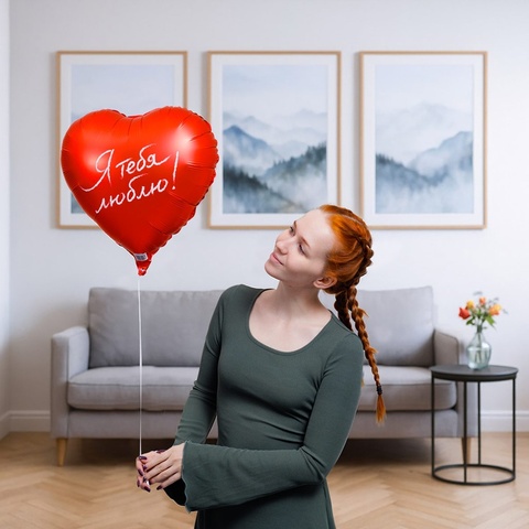Воздушный фольгированный шар в форме сердца красного цвета и с пылким признанием «Я тебя люблю!». Смотрится красиво как самостоятельно, так и в качестве дополнения к фонтану из воздушных шаров.