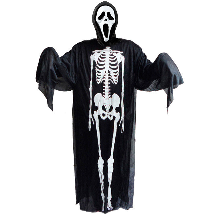 Балахон скелет с маской - готовый наряд на Хэллоуин. Лаконичный, простой, сдержанный, но весьма впечатляющий - он подойдет как парням, так и девушкам. С таким балахоном вы легко превратитесь в жуткое пугающее привидение… Модель сшита из тонкой легкой ткани и очень комфортна в ношении.