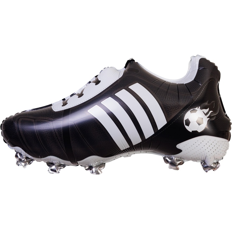 Объемный фольгированный шар, стилизованный под классическую, футбольную черно-белую бутсу - создан для тех, кто живет футболом! Это оригинальный и забавный шар станет эффектным декором на футбольных турнирах, тематических спортивных мероприятиях, а также этот шар можно подарить Футбольному болельщику, ребенку, тренеру, имениннику-спортсмену. При надувании рекомендуется использовать гелий.