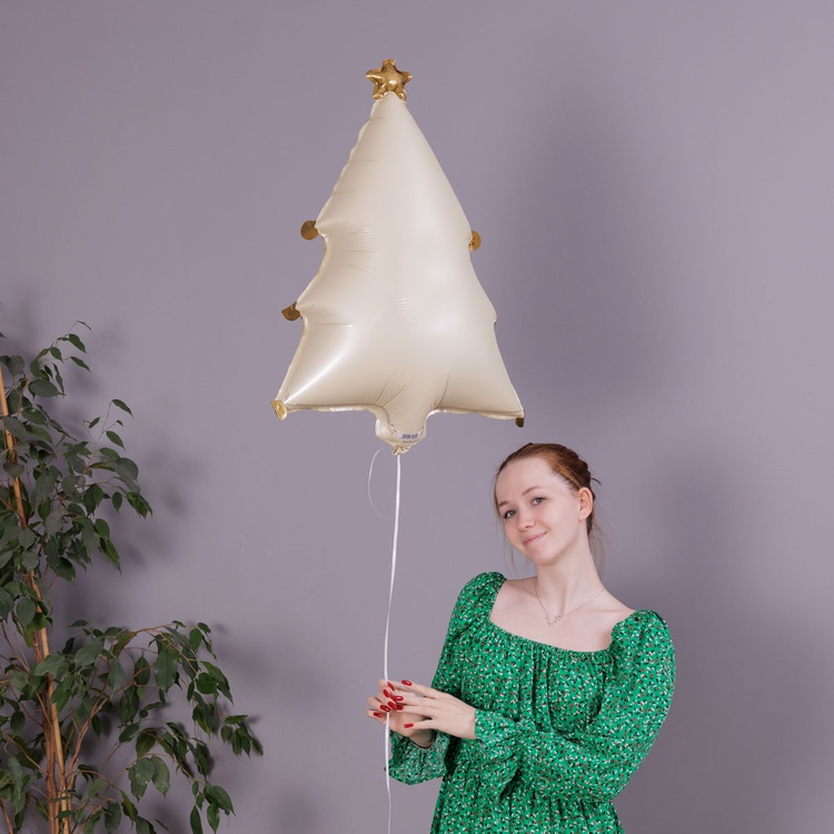 Выйти за рамки обыденности, стильно украсить новогоднее торжество поможет воздушный фольгированный шар в форме утончённой красавицы Елки, выполненной в нежных кремовых оттенках.