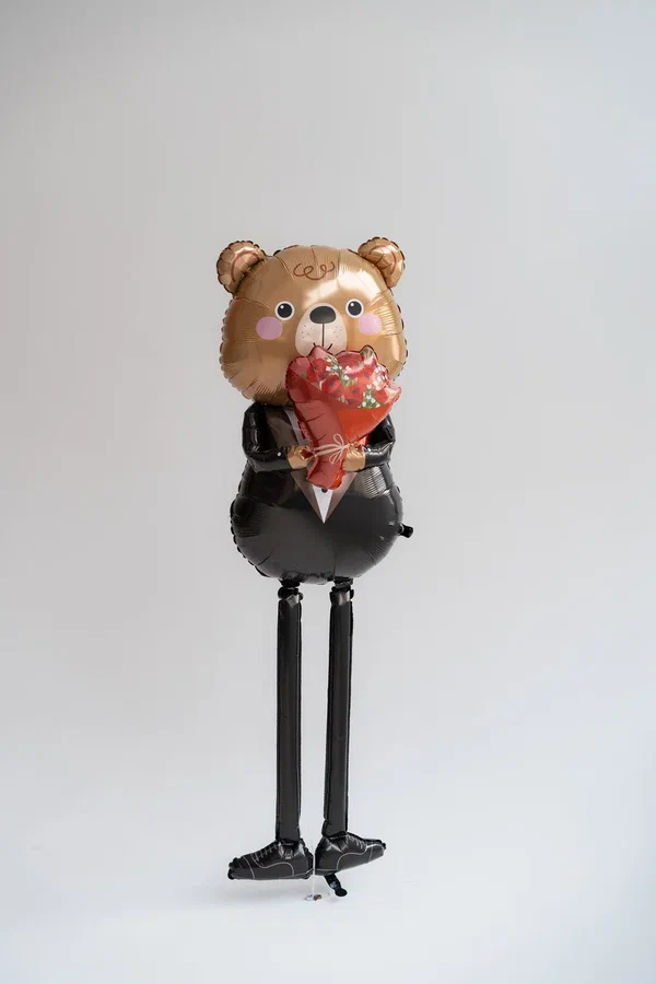 Ходячая фигурка-шар «Медведь с букетом» — очаровательный акцент вашего праздника!