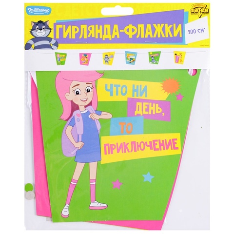 Гирлянда из 6 флажков на ленте с изображением героев мультфильма Простоквашино.