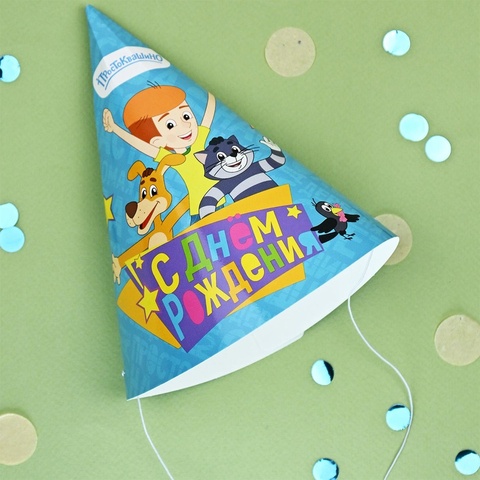 Классика детской литературы — Простоквашино. Яркие и красочные колпаки с изображениями любимых героев сказки создадут атмосферу настоящего праздника, в которой каждый ребенок почувствует себя частью волшебного приключения.