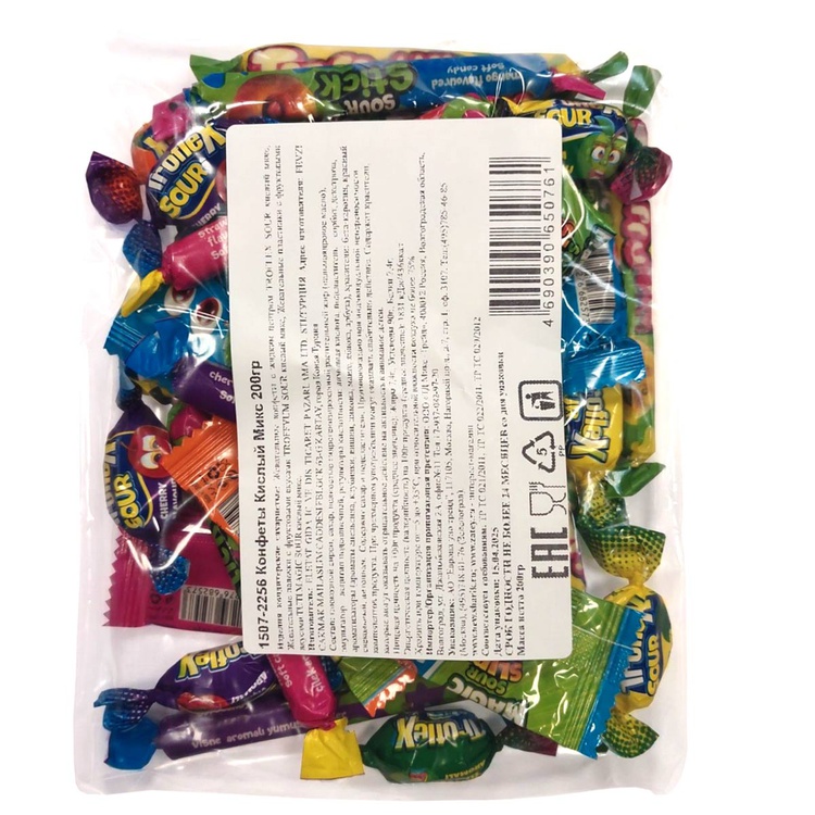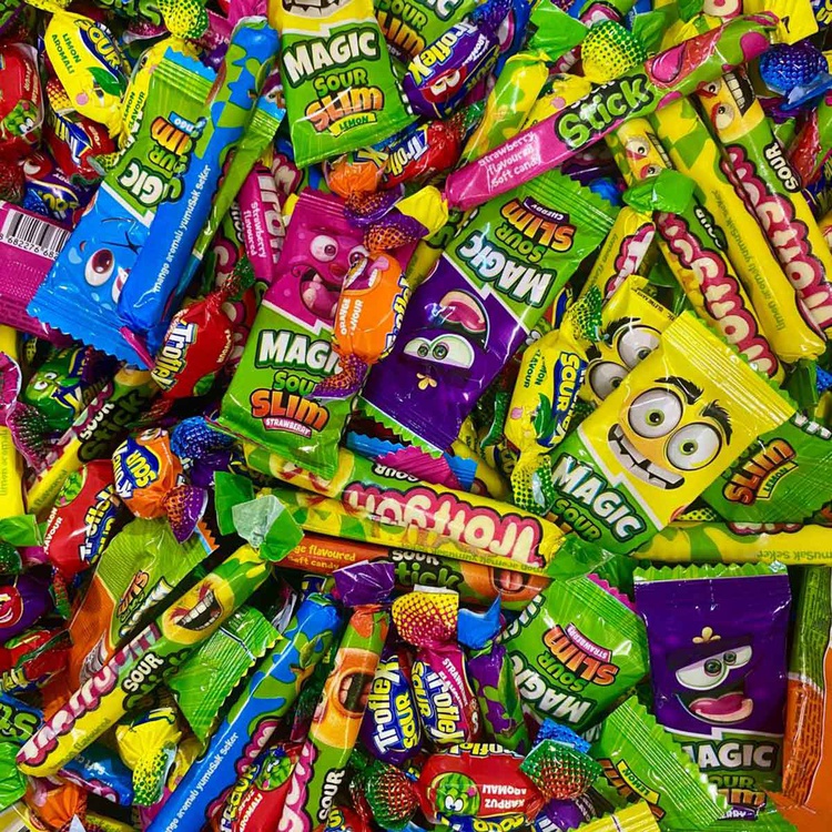 Кислые конфеты для наполнения Пиньяты. В пиньяту кладут различные угощения, игрушки, конфетти и подвешивают к потолку или на дерево. При игре в традиционную пиньяту участнику завязывают глаза, раскручивают, и затем он пытается за несколько попыток найти и разбить пиньяту из которой разноцветной россыпью высыпается содержимое. Кислый микс состоит из жевательных конфет с жидким центром, из палочек, пластинок с фруктовыми вкусами. Вес набора 200гр.