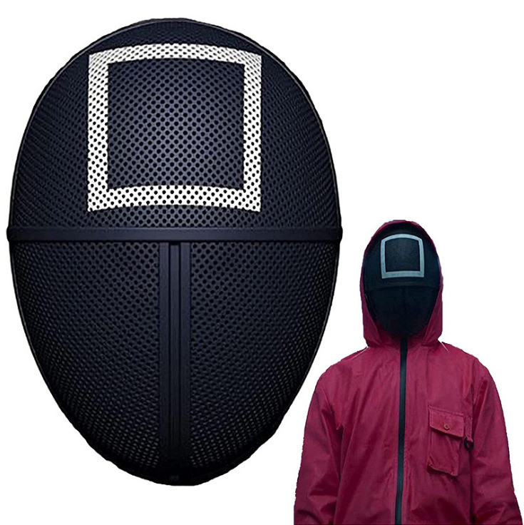 Маска Игра в кальмара квадрат понравится тем, кто стремится создать образ надзирателя из мегапопулярного корейского сериала. Незаменимый вариант для тематических вечеринок и Хэллоуина! Дополнить можно соответствующим красным костюмом-комбинезоном.