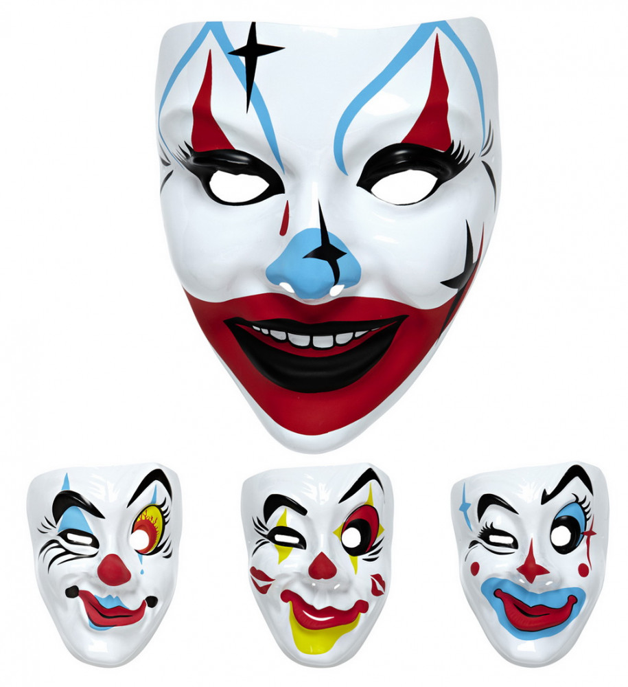 Маска клоуна в четырех разных вариантах – это универсальный аксессуар для создания различных клоунских образов. От веселого и дружелюбного до пугающего и мрачного – с этой маской вы легко создадите любой нужный образ. Идеально подходит для карнавальных вечеринок, театральных постановок и цирковых представлений.