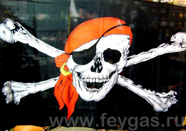 Платок (флаг) пиратский большой может стать отличным дополнением к костюму пирата! Повяжите его на руку или на голову как бандану - вариантов великое множество! Сделайте Ваш образ максимально продуманным! Кроме того, данный аксессуар можно использовать и как флаг для украшения помещения!