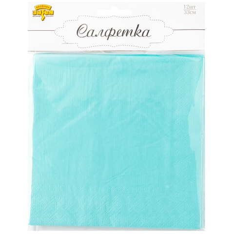 Обратный звонокБирюзовая двухслойная салфетка 33х33см, 12 штук в упаковке. Используется совместно с другими элементами коллекции (тарелки ,стаканы, скатерть) как украшение стола или по своему непосредственному назначению.