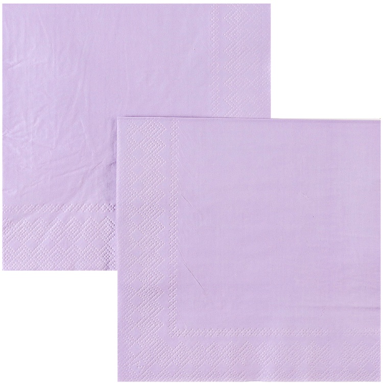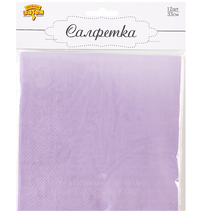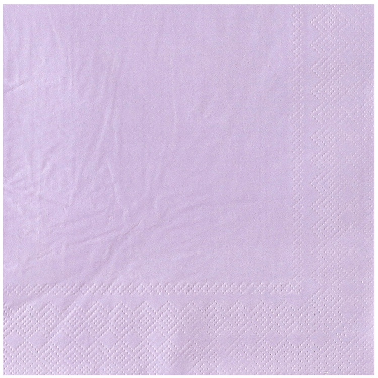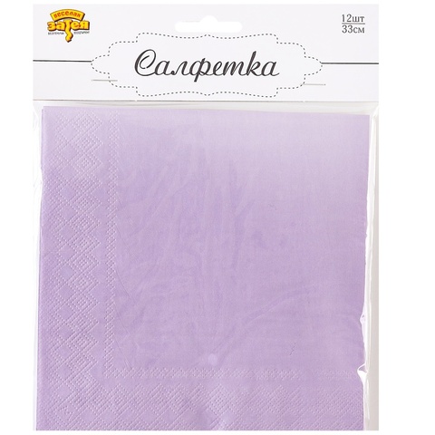 Обратный звонокДвухслойная салфетка лавандового цвета. Используется совместно с другими элементами коллекции по дизайну (тарелки, стаканы и т.п.) как украшение стола или по своему непосредственному назначению. В упаковке 12шт, размер 33см.