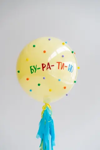 • шар с надписью «БУ-РА-ТИ-НО» задаёт игривый тон и отсылает к любимой сказке;