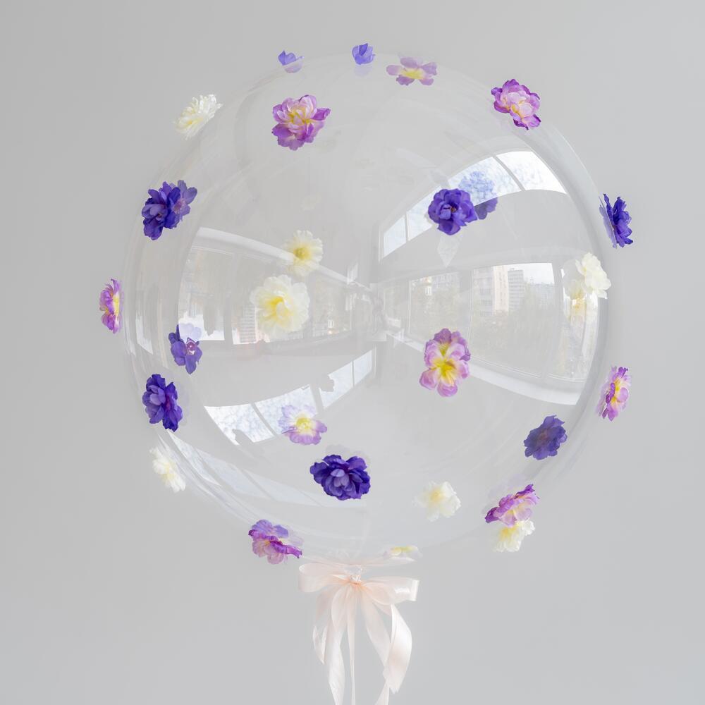 • 1 прозрачный бабл 60 см с декоративными цветами и бантом