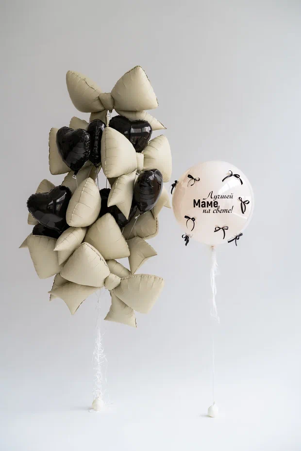 - Атласный белый бант под шаром, завершающий образ и подчеркивающий нежность момента.