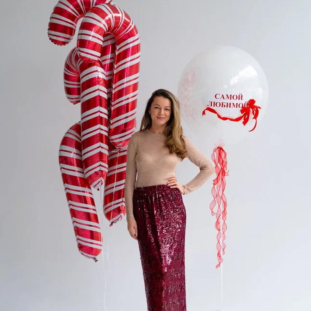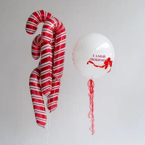 5 новогодних карамелек — красочные фольгированные шары в форме классических леденцов, с полосками красного и белого, как настоящие конфеты из сказки. Они создадут эффект веселого вихря, добавив в праздник нотку игривости и тепла.