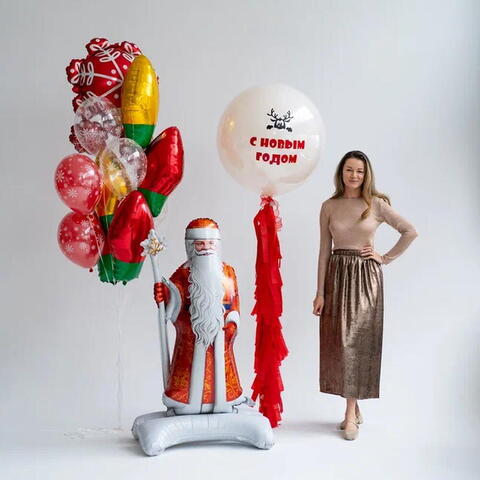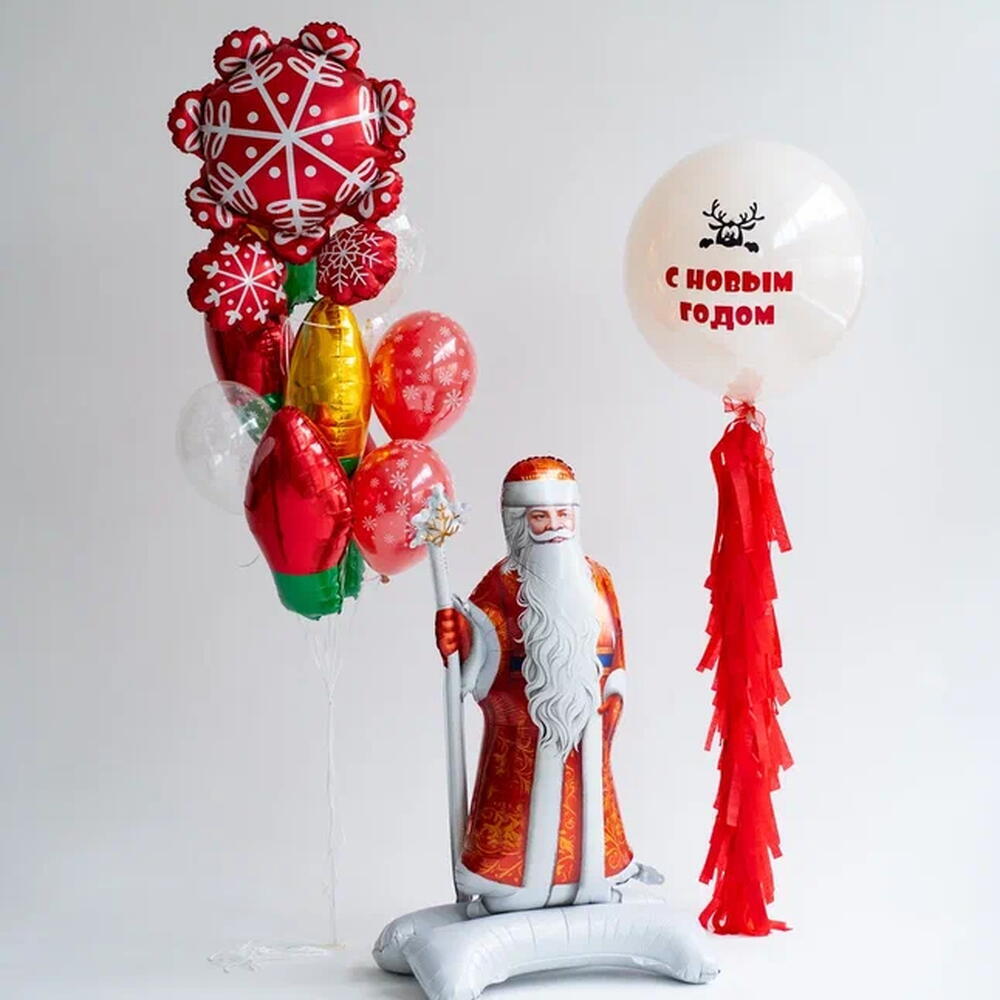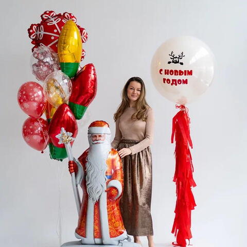 Создайте волшебную атмосферу праздника с помощью этого эффектного набора воздушных шаров! В композицию входит красочная связка шаров, ходячая фигура Деда Мороза и стильный стеклянный шар, оформленный тассел гирляндой. Этот набор станет отличным украшением для новогодней вечеринки, дома или в качестве запоминающегося подарка.