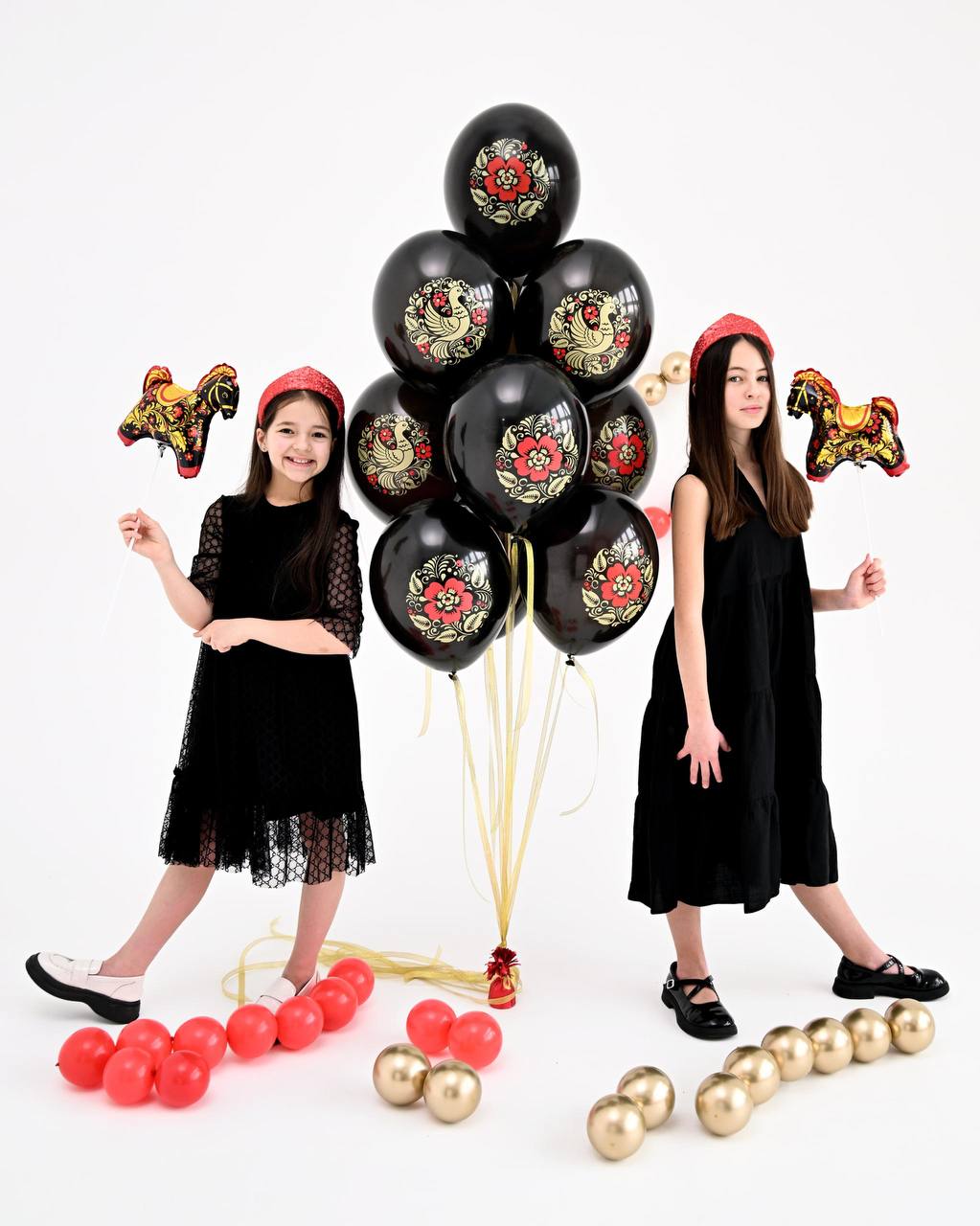 Откройте для себя очарование русского стиля! Сочетание шаров в стиле Золотая Хохлома, ярких красных и золотых линколунов, а также маленьких золотых лошадок на палочках – идеальный выбор для украшения праздника или тематической фотосессии. Купить готовую праздничную композицию легко и выгодно прямо сейчас!