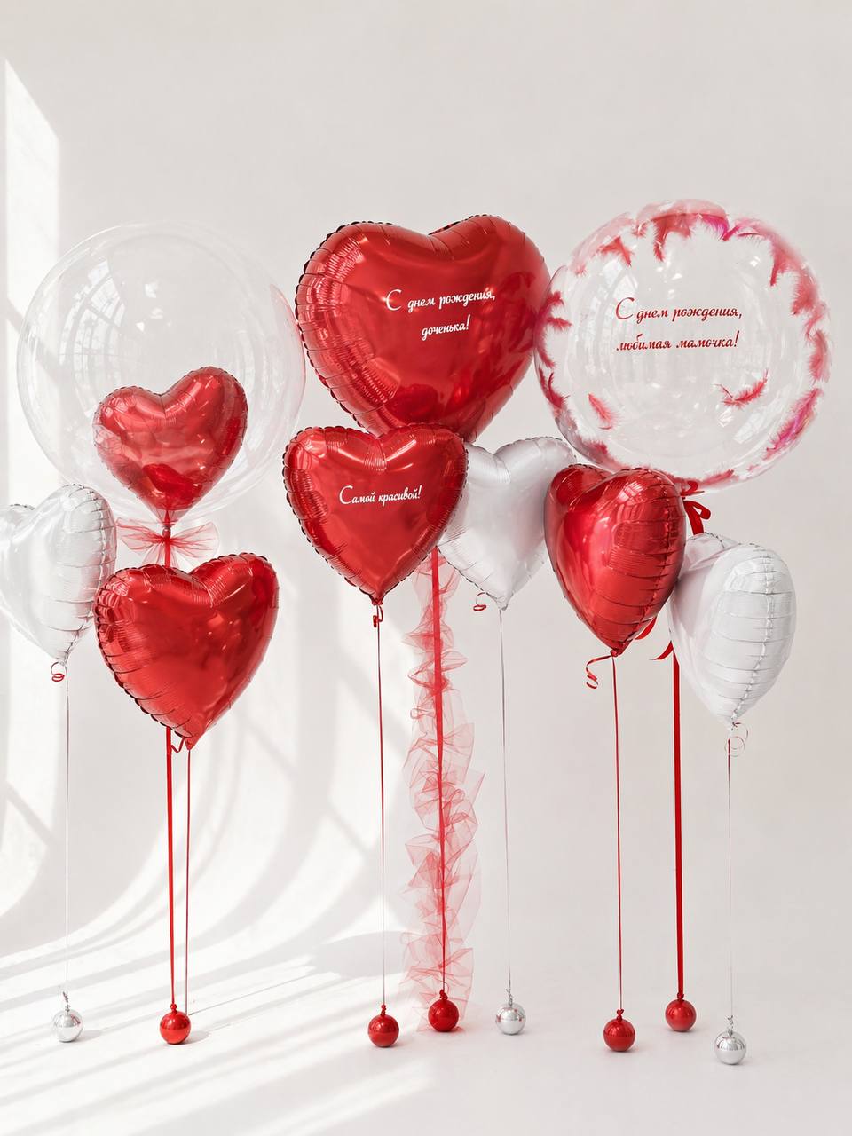 -Фигура сердце 18 дюймов 5 шт (белых 3 шт,красных 2 шт)