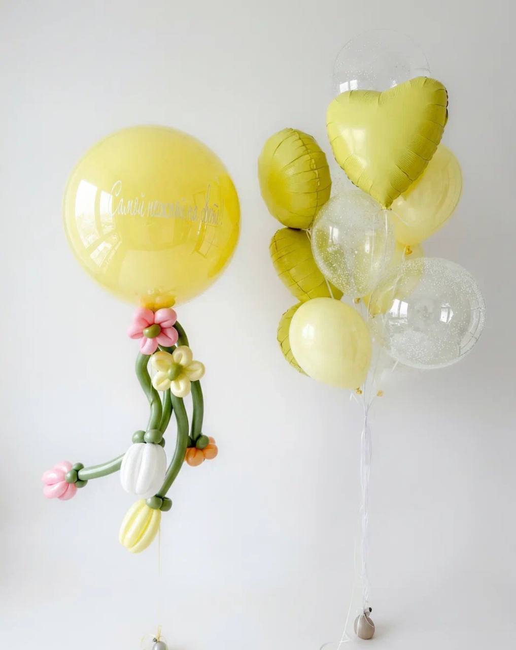 -2 шара гелиевые прозрачные 45 см с белыми гранулами