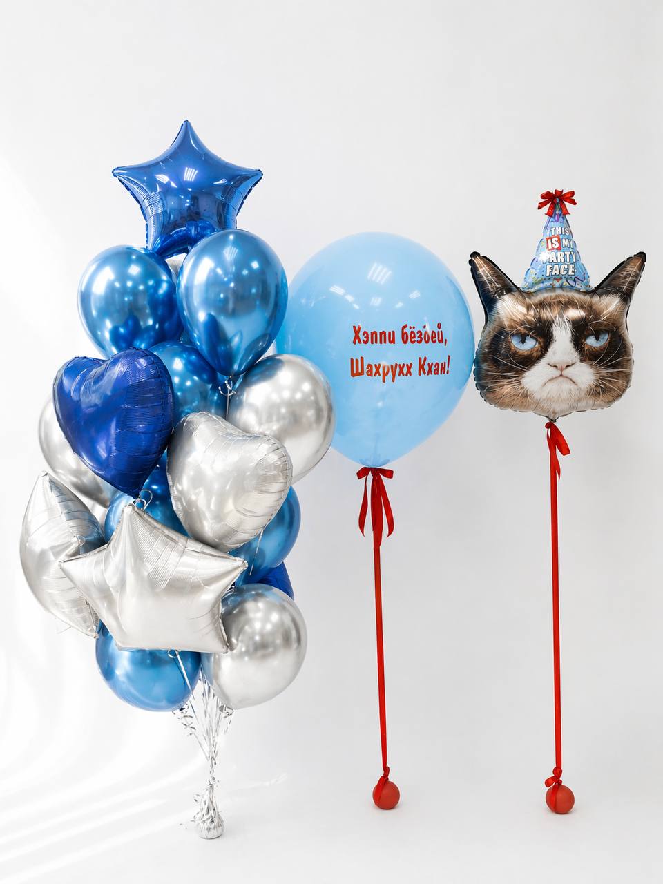 Отдельно на грузик, лента красная атласная с бантиком под шар :