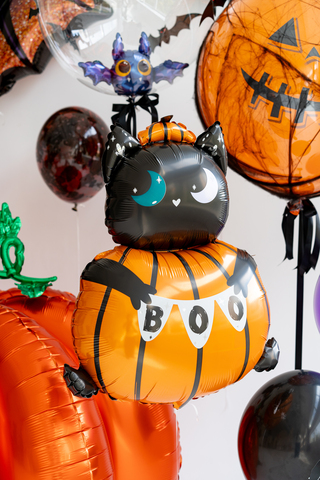 Представьте: летающие летучие мыши, хитрый паук, милые котики с тыквами и гигантская оранжевая тыква, которая словно оживает! Сет создаст по-настоящему мистическую атмосферу, где каждый шар рассказывает свою историю. Легко собирается, долговечен и безопасен — ваши гости будут в восторге!