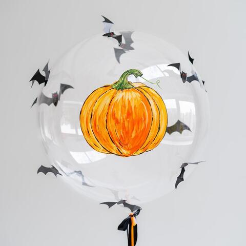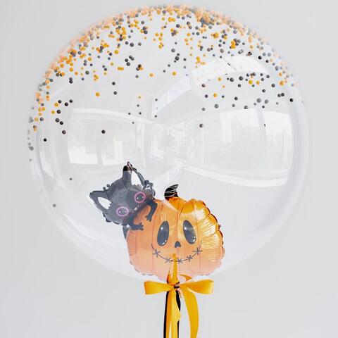 1 баблс-шар с тыквой внутри и разноцветными гранулами — яркий и праздничный, с оранжевой тыквой и конфетти-гранулами для wow-эффекта.