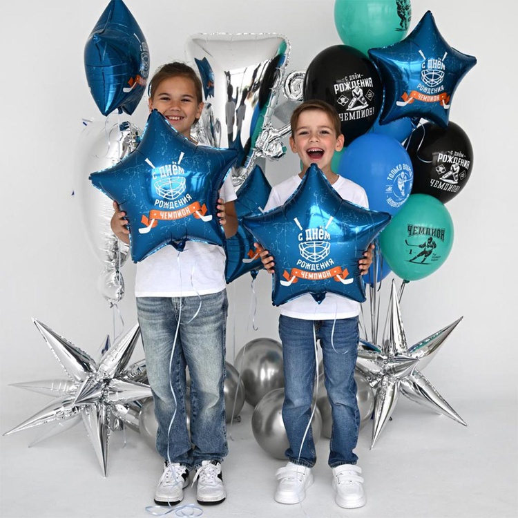 Шар гелиевый звезда С ДР ЧЕМПИОН Хоккей