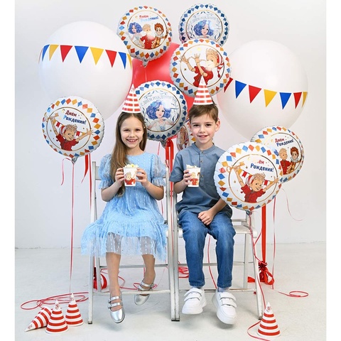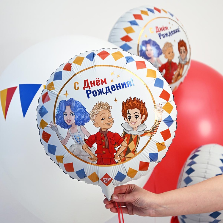 Воздушный фольгированный лицензионный шар с изображением Буратино, Арлекин и Мальвины и пожеланием «С днём рождения. Шар смотрится интересно как самостоятельно, так и в качестве дополнения к тематическому фонтану из воздушных шаров. Поставляется в ненадутом состоянии. Для того, чтобы шар летал, рекомендуем надувать его гелием. Для удобства работы шар снабжен самозакрывающимся клапаном. Надутый гелием шар летает от двух дней. Внимание! Цветовой оттенок шара в действительности может отличаться от представленного на фотографии в зависимости от настроек Вашего монитора. Размер шара: в ненадутом виде – 18’’/46см, в надутом виде – 13’’/32см.