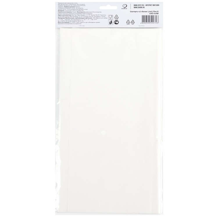 Обратный звонокОднотонная белая скатерть - используется совместно с другими элементами коллекции по дизайну (тарелки, стаканы, приборы и т.п.) как украшение стола или по своему непосредственному назначению.