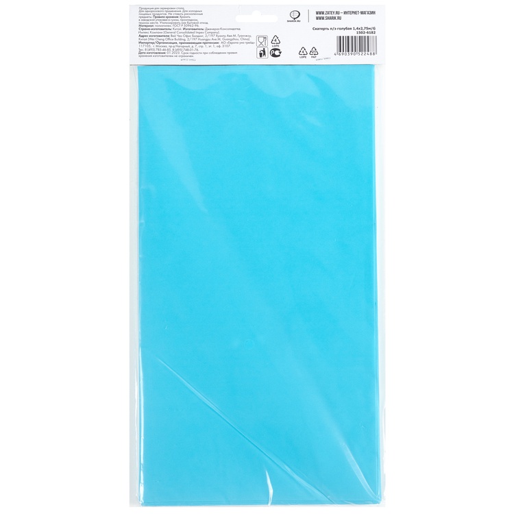 Обратный звонокОднотонная голубая скатерть - используется совместно с другими элементами коллекции по дизайну (тарелки, стаканы, приборы и т.п.) как украшение стола или по своему непосредственному назначению.