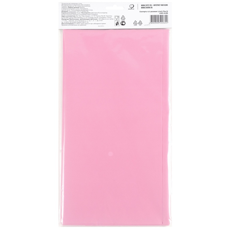 Обратный звонокОднотонная розовая скатерть - используется совместно с другими элементами коллекции по дизайну (тарелки, стаканы, приборы и т.п.) как украшение стола или по своему непосредственному назначению.