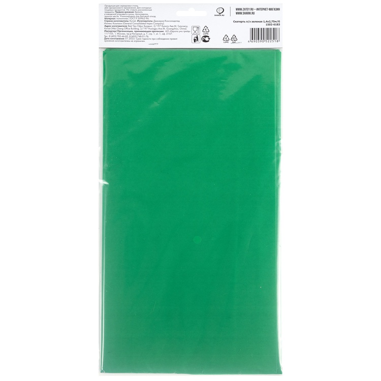 Обратный звонокОднотонная зеленая скатерть - используется совместно с другими элементами коллекции по дизайну (тарелки, стаканы, приборы и т.п.) как украшение стола или по своему непосредственному назначению.