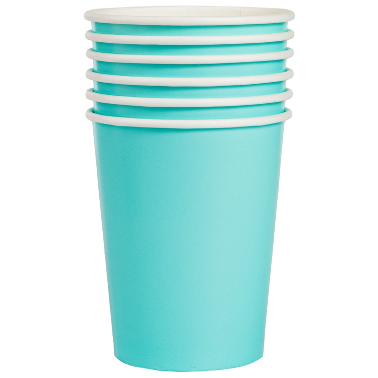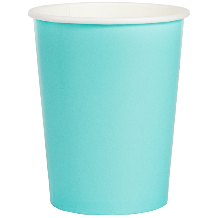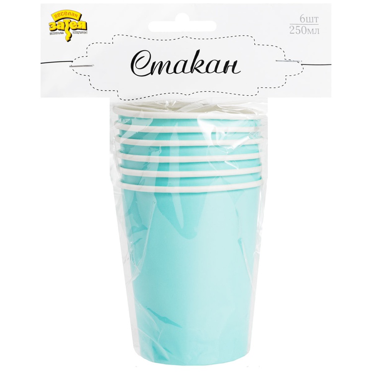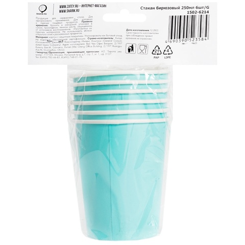 Обратный звонокБирюзовый бумажный стаканчик объемом 250мл, 6 штук в упаковке. Используется совместно с другими элементами коллекции (тарелки, приборы, скатерти и т.п.) как украшение стола или по своему непосредственному назначению.