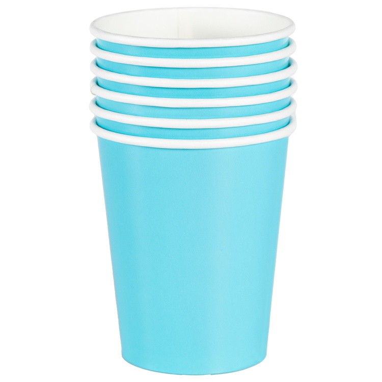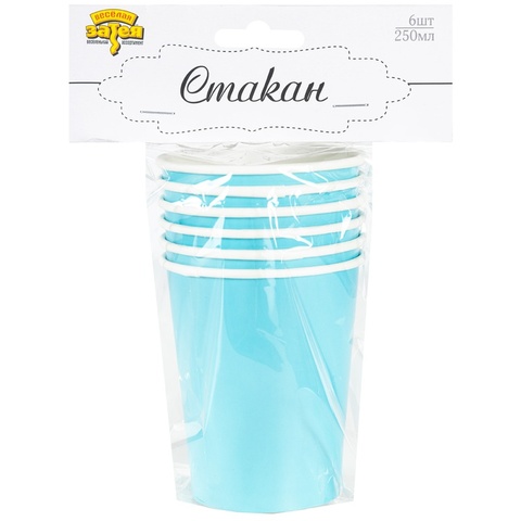 Обратный звонокГолубой бумажный стаканчик объемом 250мл, 6 штук в упаковке. Используется совместно с другими элементами коллекции (тарелки, приборы, скатерти и т.п.) как украшение стола или по своему непосредственному назначению.