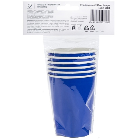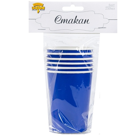 Обратный звонокСиний бумажный стаканчик объемом 250мл, 6 штук в упаковке. Используется совместно с другими элементами коллекции (тарелки, приборы, скатерти и т.п.) как украшение стола или по своему непосредственному назначению.