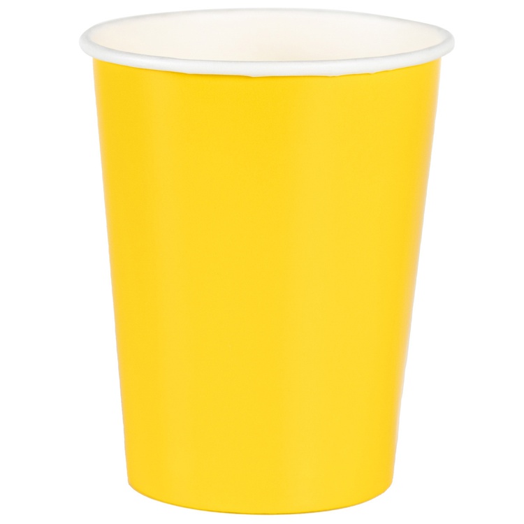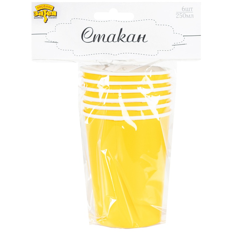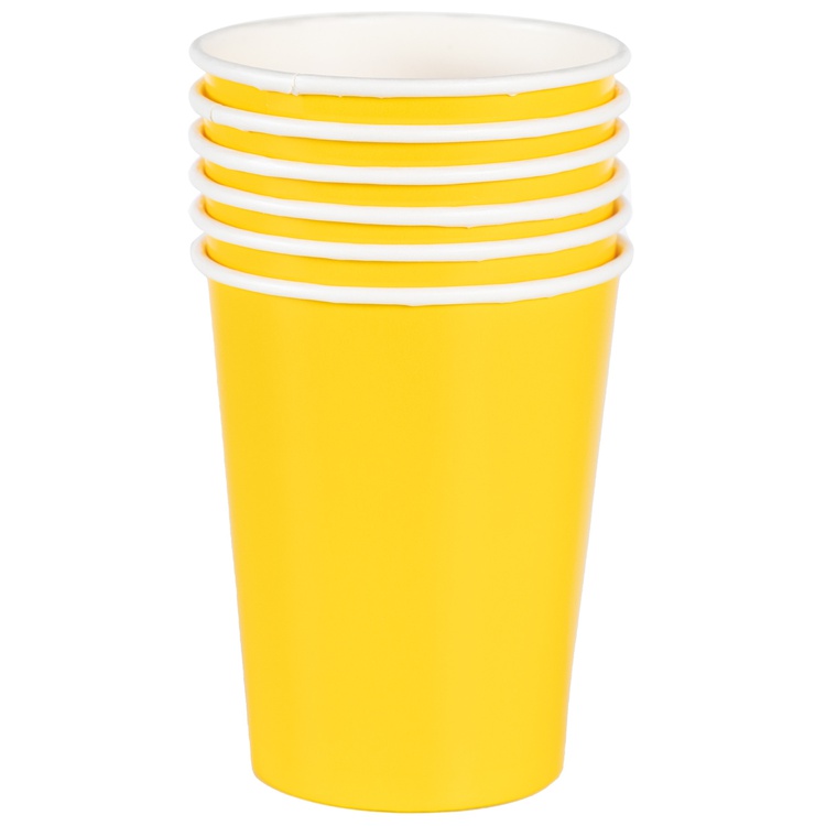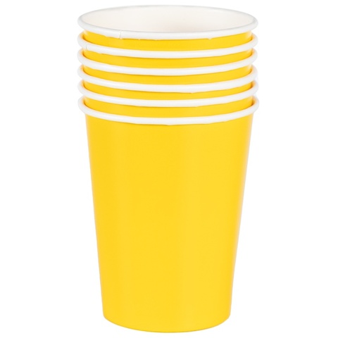 Обратный звонокЖелтый бумажный стаканчик объемом 250мл, 6 штук в упаковке. Используется совместно с другими элементами коллекции (тарелки, приборы, скатерти и т.п.) как украшение стола или по своему непосредственному назначению.