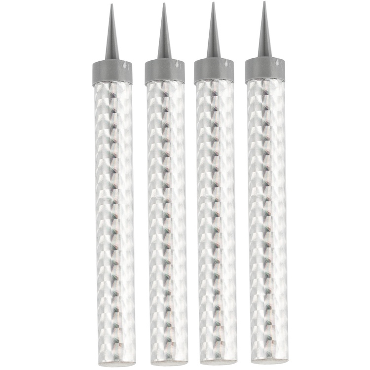 Свеча-Фонтан – очень зрелищный и эффектный способ наполнить ваш праздник ярким фейерверком эмоций! Уникальное и универсальное изобретение, которое превратит любое событие: День Рождения, Новый год, свадьбу, корпоративную вечеринку в незабываемое торжество. Свеча-Фонтан может использоваться как самостоятельно, так и в сочетании с классическими свечами для торта. Для установки в торт или любое другое кондитерское изделие в каждом фонтане предусмотрена пластмассовая пика. Высота свечи 12см, время горения 40 секунд, в упаковке 4 штуки, цвет пламени одинаковый у всех свечей (золотые искры). Несмотря на то, что продукция по принципу работы схожа с бенгальскими огнями (производит пламя с низкой температурой горения), пожалуйста, не забывайте соблюдать элементарные правила безопасности!