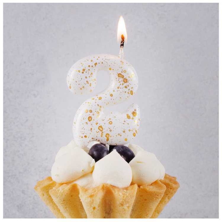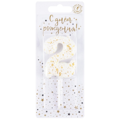 Свеча-цифра "2" Белые брызги 5,6см
