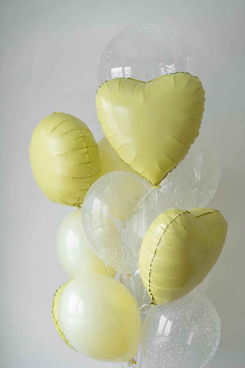 Эта праздничная композиция из гелиевых шаров станет ярким акцентом любого события! Её нежные оттенки жёлтого и прозрачные шары с белыми гранулами создадут атмосферу весенней лёгкости. Подойдет для украшения помещений, открытых площадок в тёплое время года, свадебных церемоний и детских праздников. Зафиксируйте момент радости с помощью стильного акцента от нашего магазина!