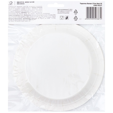 Обратный звонокБелая бумажная тарелка, 17см, 6 штук в упаковке. Используется совместно с другими элементами коллекции как украшение стола или по своему непосредственному назначению.