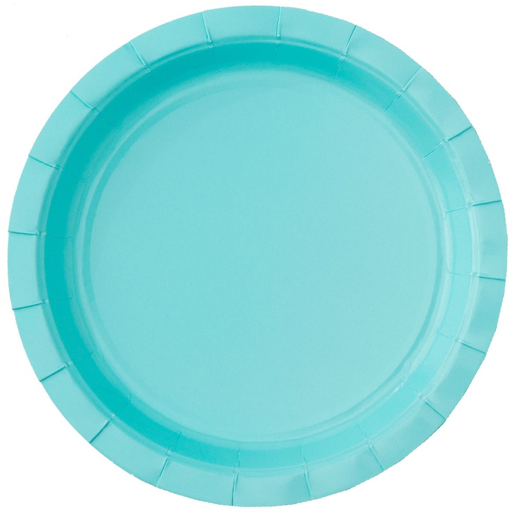Обратный звонокБирюзовая бумажная тарелка, 17см, 6 штук в упаковке. Используется совместно с другими элементами коллекции как украшение стола или по своему непосредственному назначению.