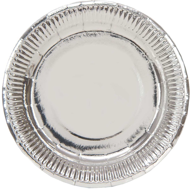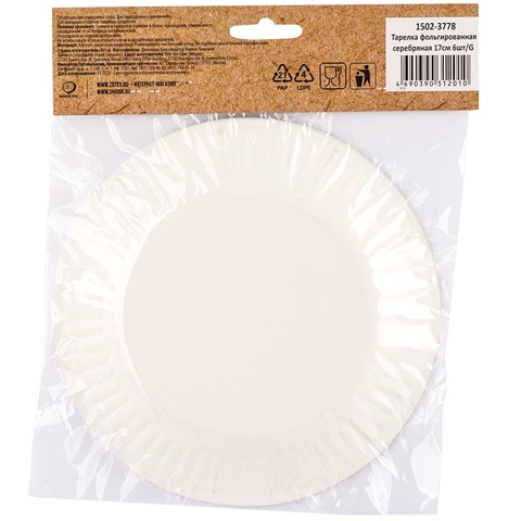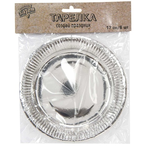 Обратный звонокЛаминированные бумажные тарелки серебряного цвета. Универсальны, подходит для любого праздничного фуршета. Выглядят стильно, нарядно и ярко. В наборе 6 тарелок размером 17 см.