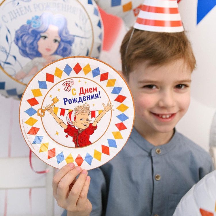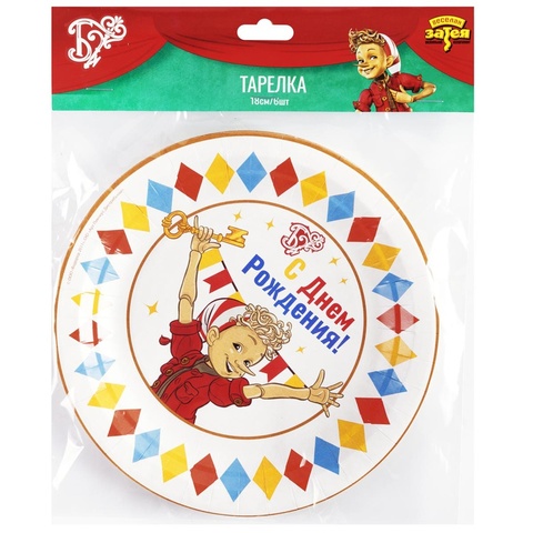 Классика детской литературы — Буратино. Яркие и красочные одноразовые тарелки с изображениями любимых героев сказки создадут атмосферу настоящего праздника, в которой каждый ребенок почувствует себя частью волшебного приключения. Посуда изготовлена из мелованного картона. Не допускается соприкосновение изделий с окислителями, щелочами и кислотами. В упаковке 6 ламинированных бумажных тарелок размером 17 см.