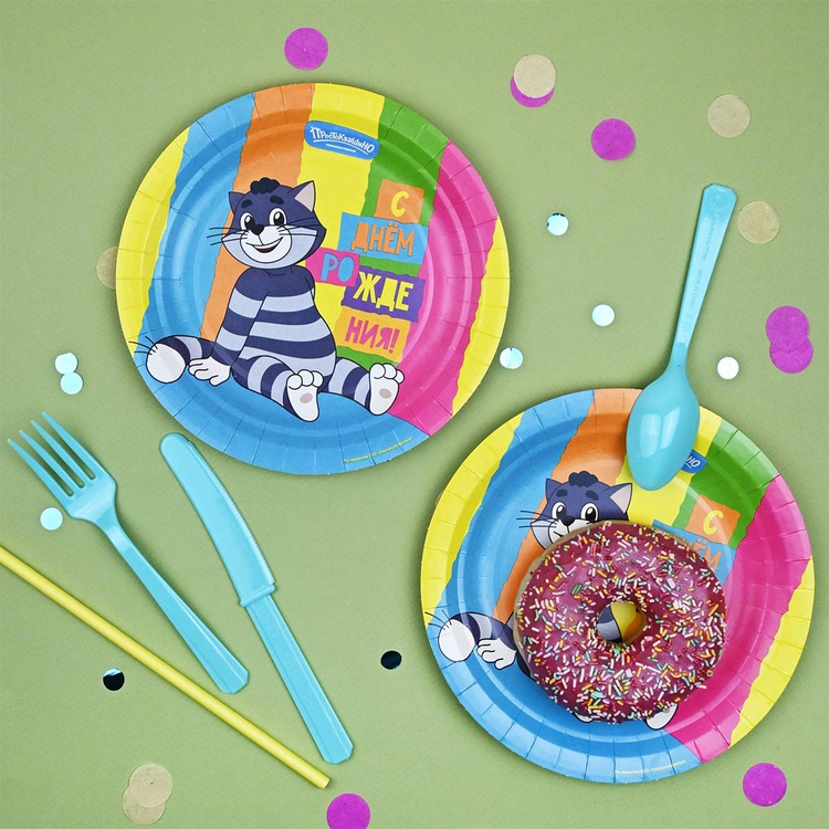 Классика детской литературы — Простоквашино. Яркие и красочные одноразовые тарелки с изображениями любимых героев сказки создадут атмосферу настоящего праздника, в которой каждый ребенок почувствует себя частью волшебного приключения. Посуда изготовлена из мелованного картона. Не допускается соприкосновение изделий с окислителями, щелочами и кислотами.