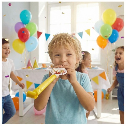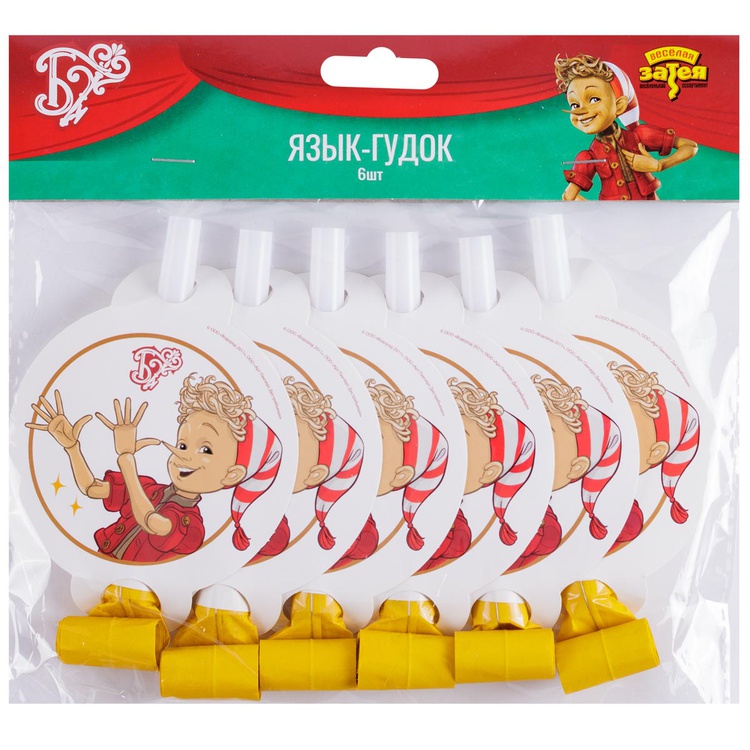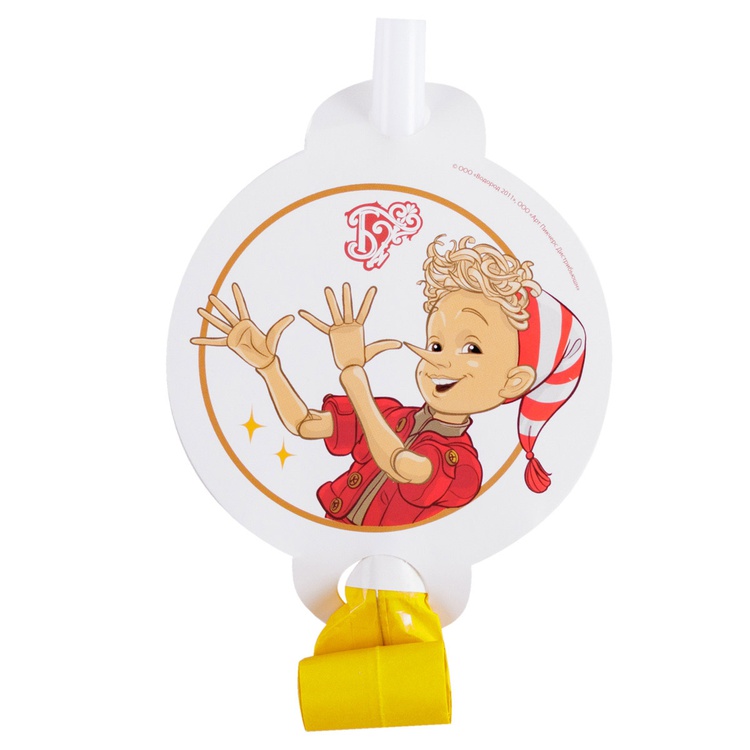 Игрушка-свистулька, разворачивается, издавая характерный звук, используется с совместно с другими элементами коллекции Буратино.